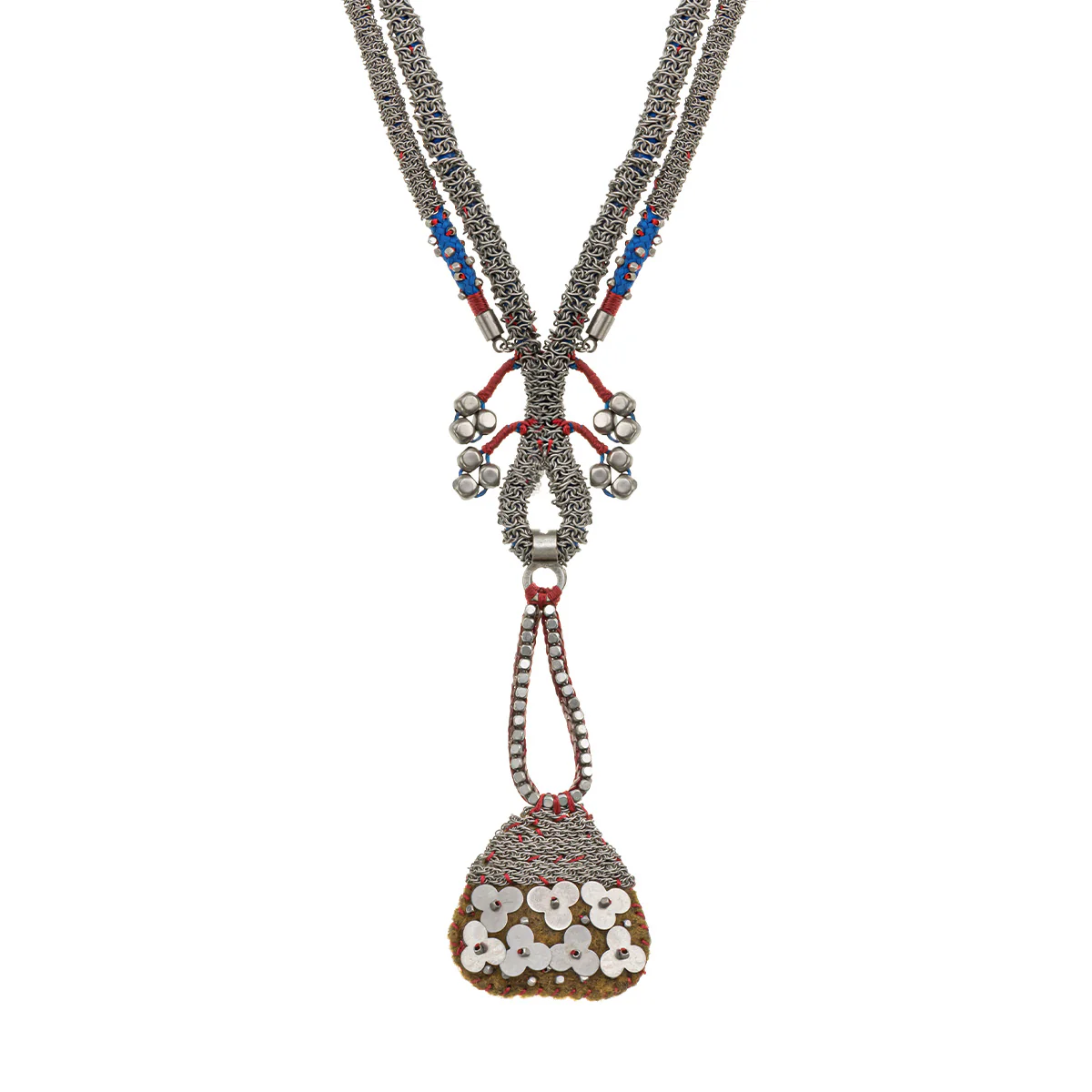 Gli elementi metallici dei gioielli sono realizzati in ottone placcato argento o oro e includono componenti, catene e perle dal design unico. Attraverso tecniche come la connessione, l’incollaggio, l’avvolgimento e l’infilatura, i metalli diventano un elemento dinamico che aggiunge texture e colore alla composizione complessiva di ogni pezzo. Oltre al loro importante ruolo estetico, le parti metalliche forniscono anche la struttura e la base per l’abbinamento con altri materiali.
