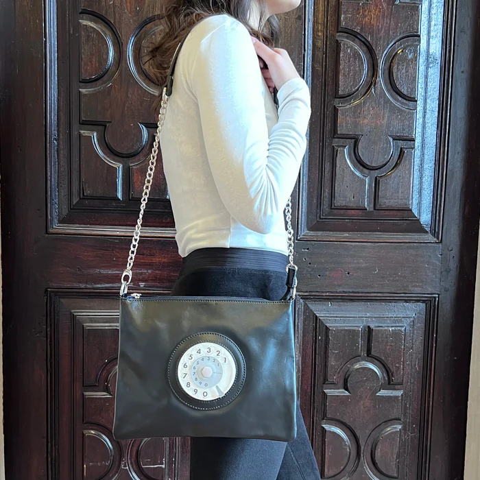 – La tracolla in pelle e catena, è removibile! Potrai portarla a mano se preferisci.